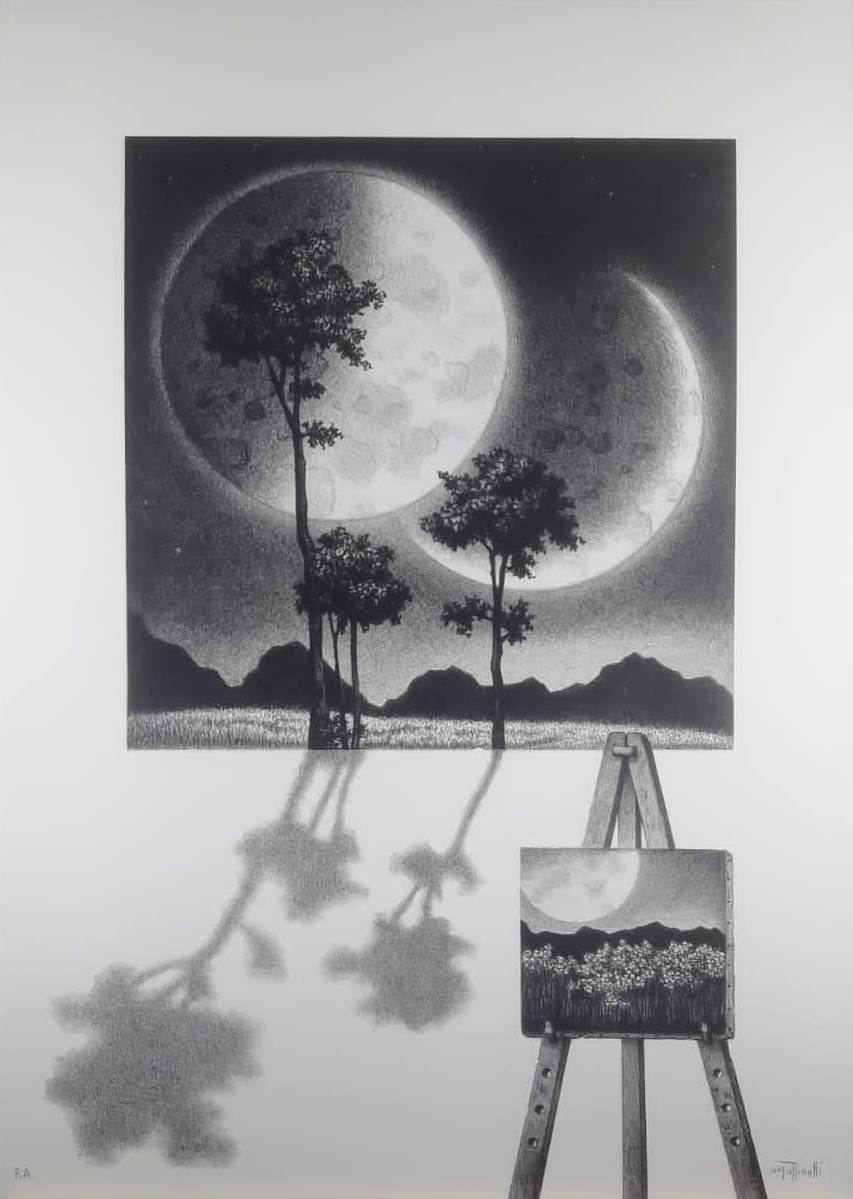 MOTTINELLI GIULIO Valcamonica 1943 “Senza titolo” litografia cm 50x70. Firmata sul fronte in basso a destra,a sinistra tiratura P A.