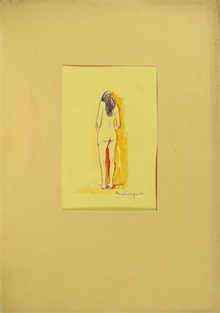 MASTROCINQUE NICOLA (1939 - 2010) Senza titolo. 1974. Tecnica mista su carta. Cm 18,00 x 25,50. Al retro timbro Nicola Mastrocinque pittore. Firma e data in basso. Misure con passepartout: 50x35cm.