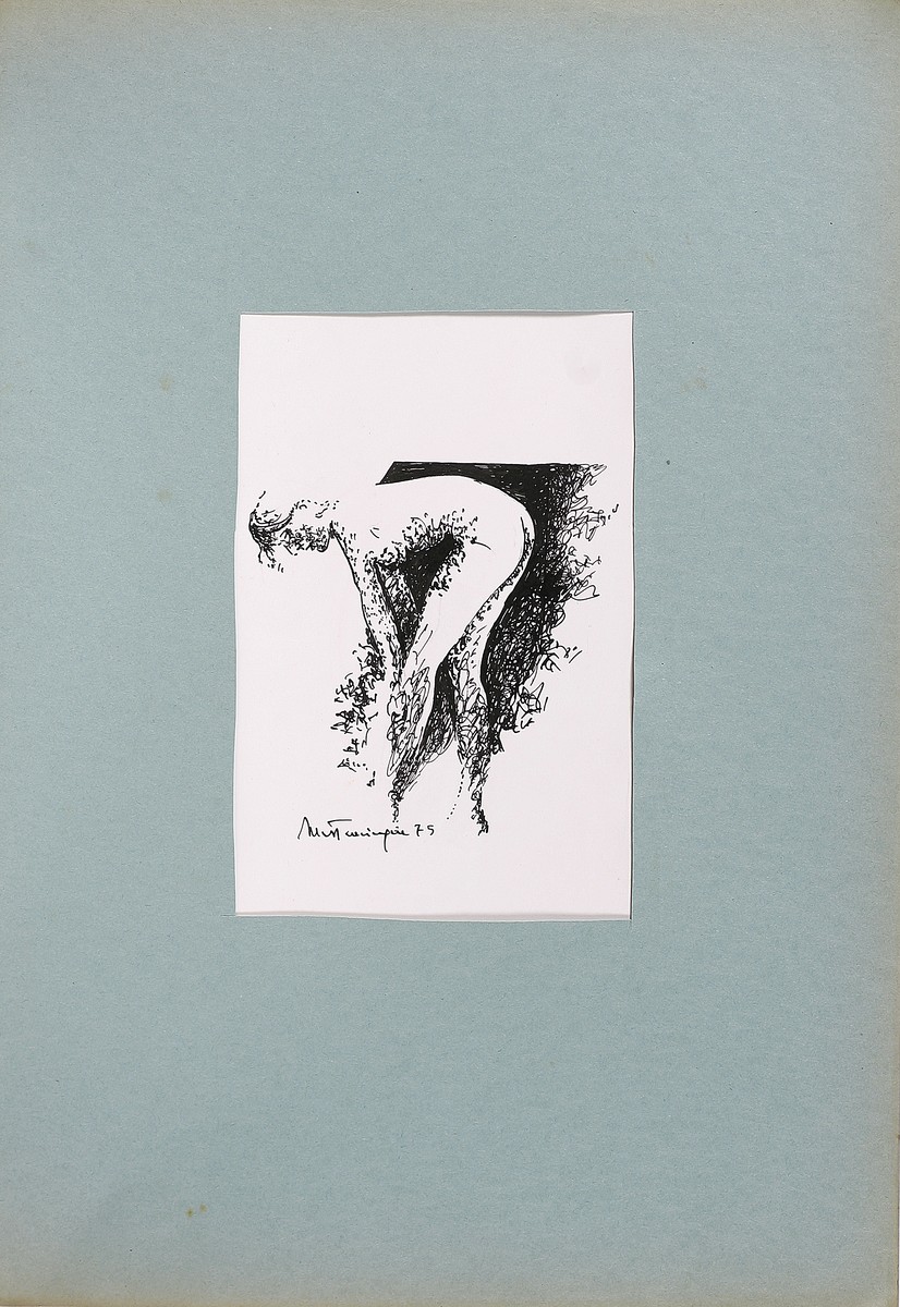 MASTROCINQUE NICOLA (1939 - 2010) Senza titolo. 1975. China su carta. Cm 17,50 x 25,50. Firma e data in basso. Misure con passepartout: 50,5x34,5cm.