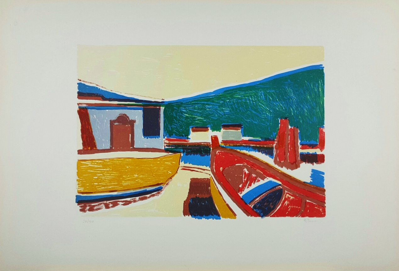 FOLLINI ANNIBALE “Senza titolo” litografia a colori cm 49x69. Firmata sul fronte in basso a destra, tiratura 39/150 a sinistra.