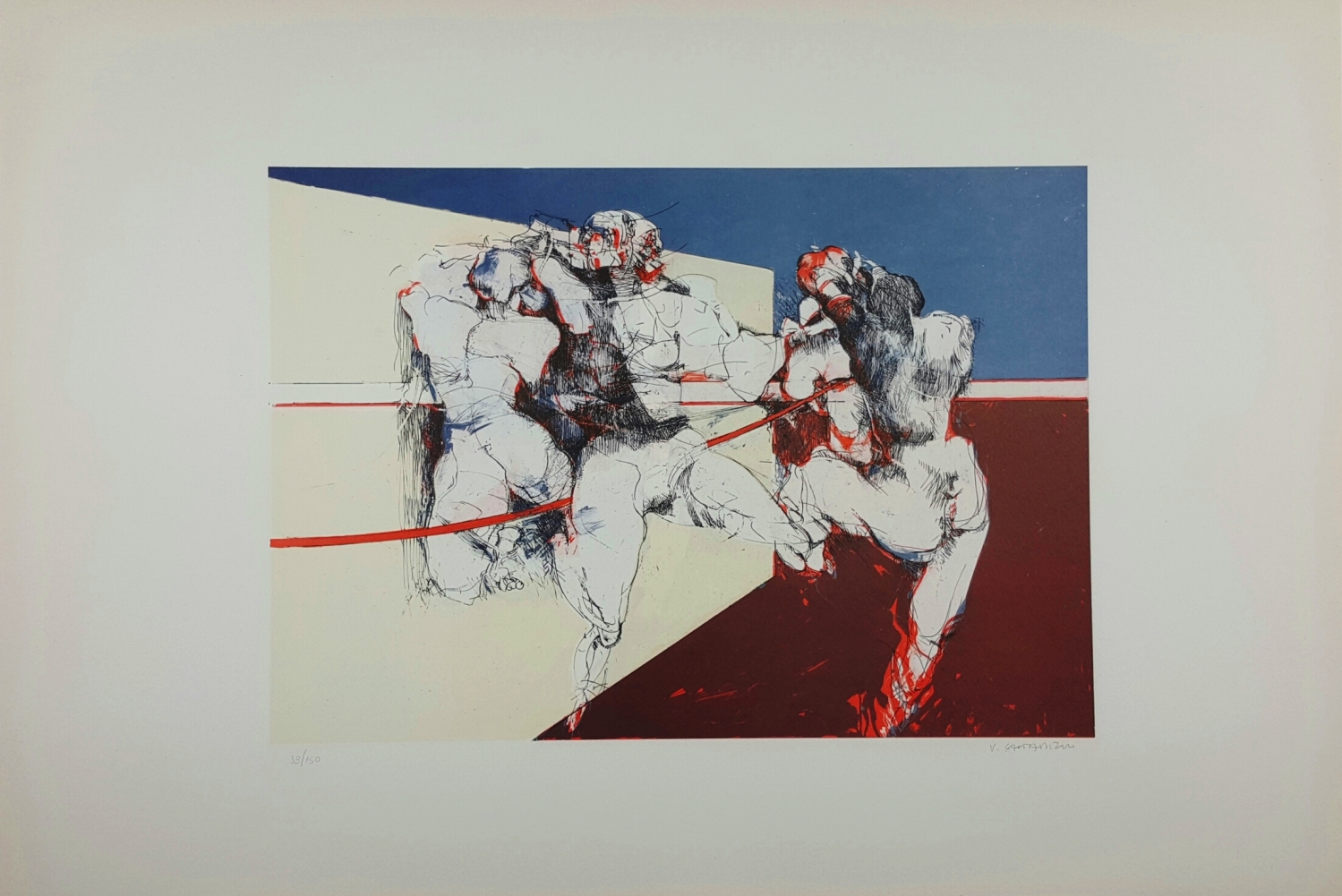 SALTARELLI VANNI Fino Mornasco 1945 “Senza titolo” litografia a colori cm 50x70. Firmata sul fronte in basso a destra, tiratura 39/150 a sinistra.