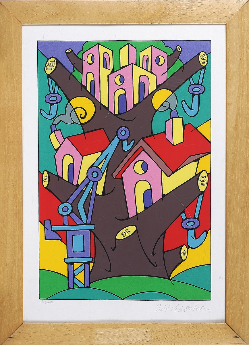 ECHAURREN PABLO (n. 1951) Senza titolo. Litografia. Cm 35,00 x 50,00. Tir. 341/400 e firma in basso a matita. Misure lastra:42,5x29cm. Cornice presente