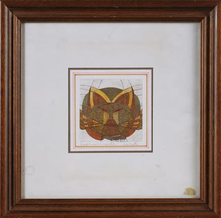 Senza titolo. Acquaforte, acquatinta, acquerello . Cm 10,00 x 10,00. Tecnica e firma - Aida Crocetta - in basso a matita. Cornice presente