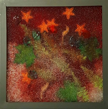 RONDA OMAR Portula 1947- Biella 2017 “Frozen” inclusioni di oggetti in resina cm 45x45 del 1992. Al retro etichetta con dichiarazione d’autenticità dell’artista con timbri, firma e numero d’archivio