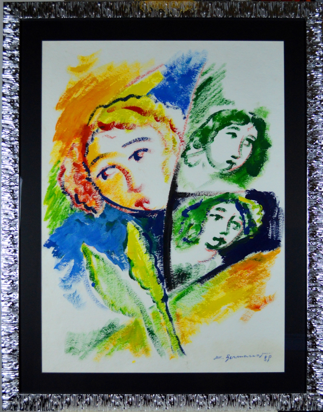 GERMANA’ MIMMO Catania 1944 - Busto Arstizio 1992“Senza Titolo “ tecnica mista su carta a mano cm 75x56 del 1989 . Firmato e datato in basso a destra. Autentica e archiviazione su foto della galleria d’arte “L’Acquario “di Caltanissetta a cura di DI Maida con timbro a secco controfirmata dal fratello Alfio Germanà. Opera pubblicata su catalogo  a cura della Saletta d’Arte Viviani di Pisa.
