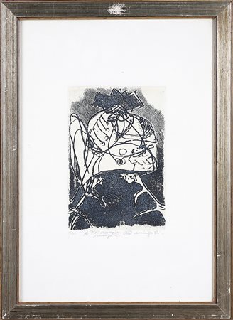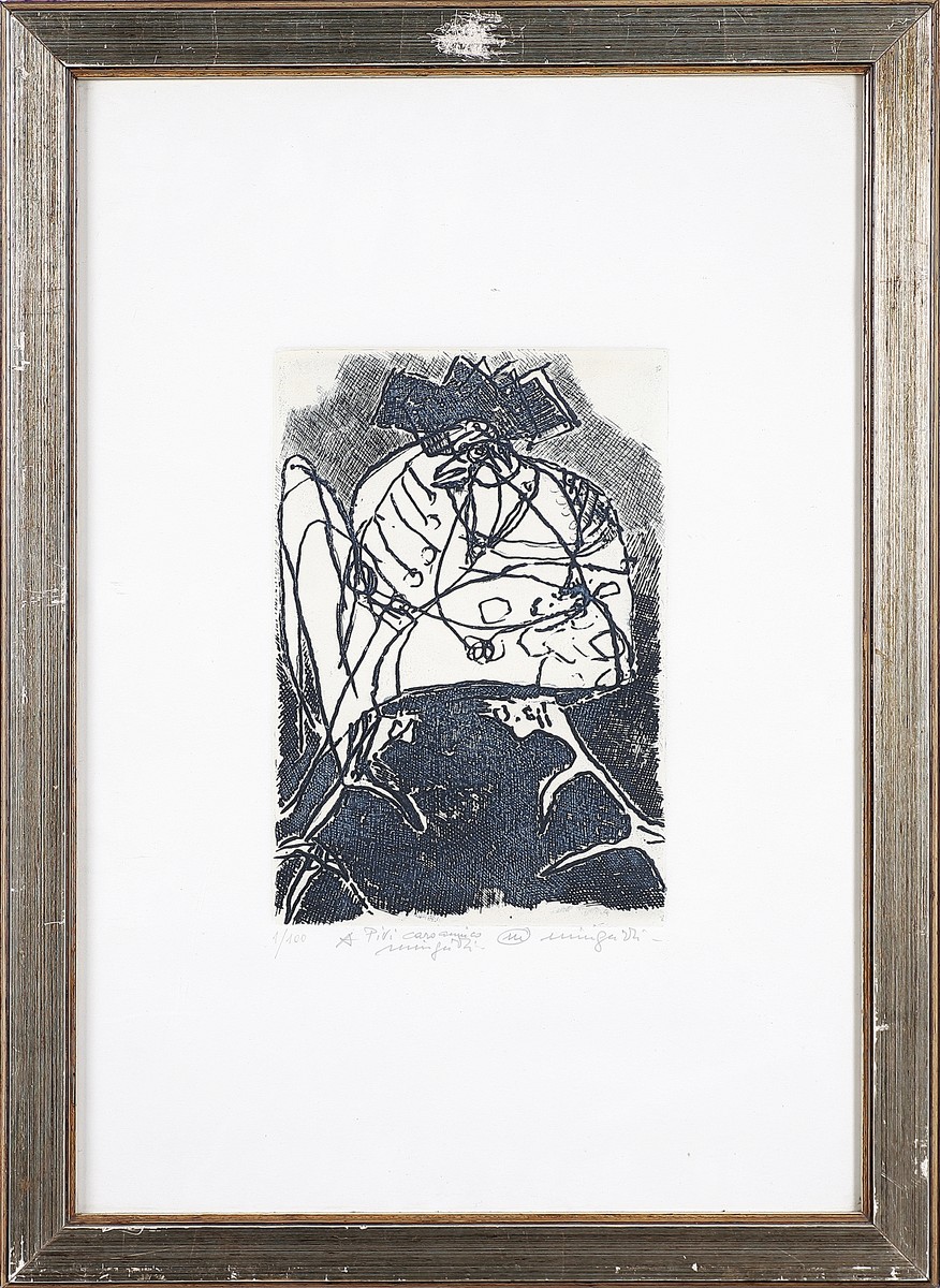 MINGUZZI LUCIANO (1911 - 2004) Senza titolo. Acquaforte. Cm 18,00 x 24,00. 1/100. Tiratura firma e dedica in basso a matita. Cornice presente