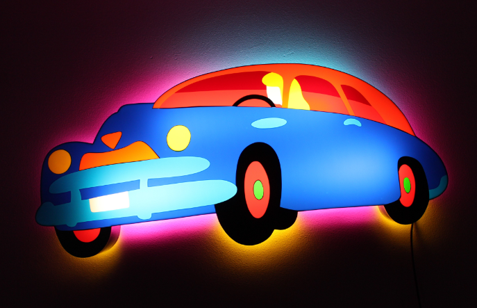 LODOLA MARCO PAVIA 1955 “Auto” scatola luminosa cm 55x121x12 Autentica dell'artista su foto.
