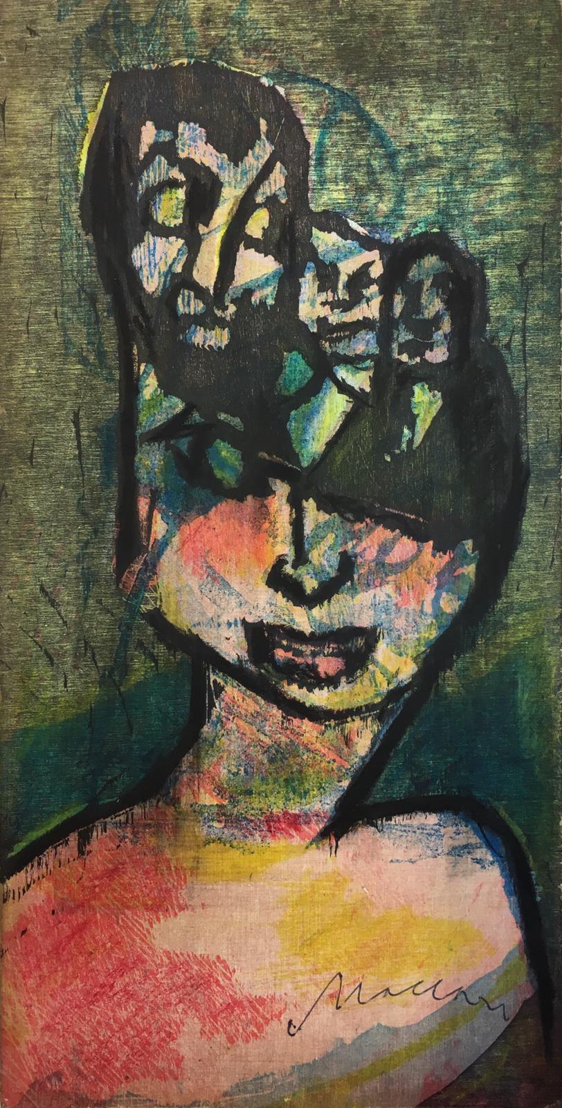 MACCARI MINO Siena 1898-Roma 1989 “Senza titolo” xilografia ritagliata, privata del numero e della firma ed applicata su tavola, poi rifirmata dall’ autore nuovamente così come viene descritto nella lettera di riscontro presso l’archivio e dalla fotocopia che ritrae l’opera in originale. Da considerarsi pezzo unico.
