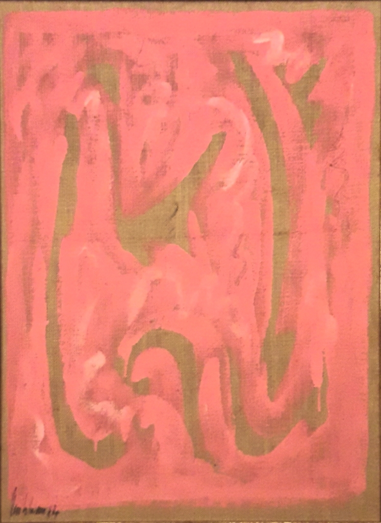 EMBLEMA SALVATORE Nspoli 1926-2006 “Senza titolo” terre colorate su tela di juta cm 60x80 del 1984. Firmata e datata sul fronte in basso a destra. Sul retro etichetta descrittiva della casa d’aste Vincent con numero di repertorio.