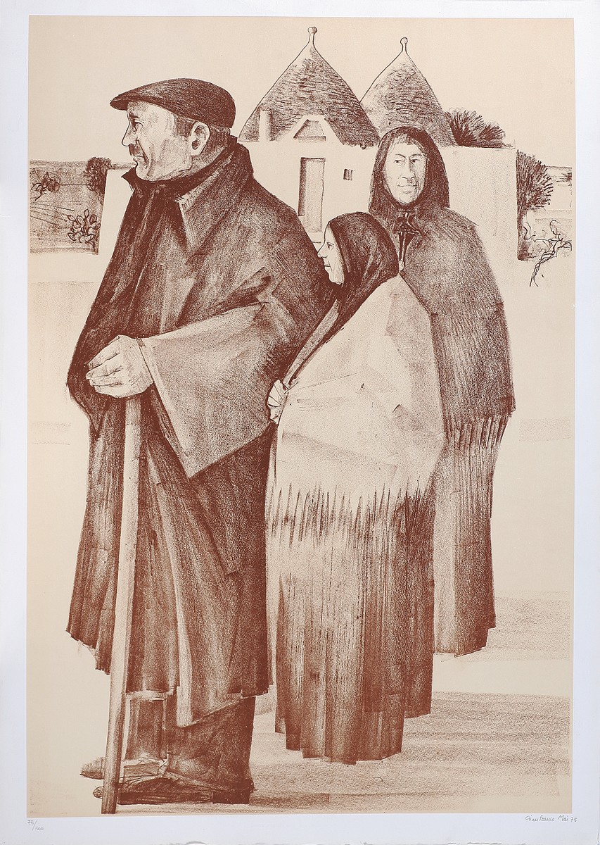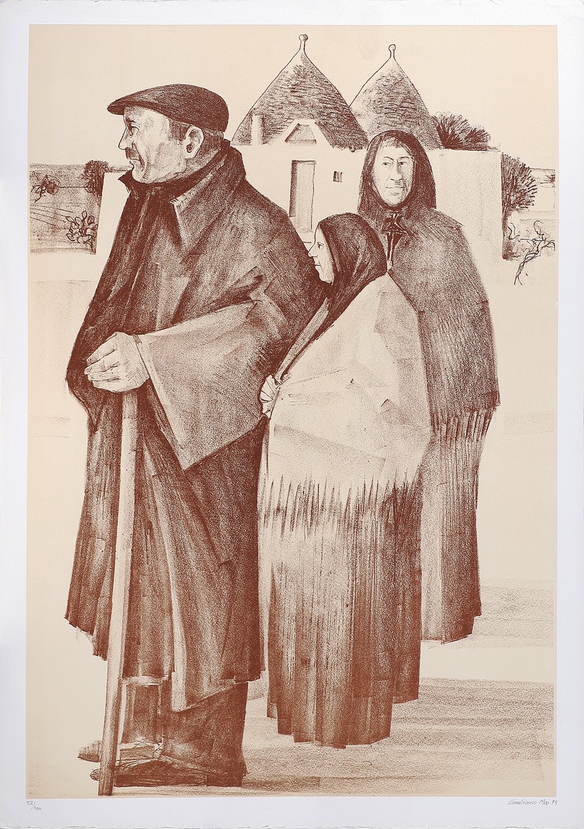 Lotto formato da n.12 opere. Litografia. Cm 70,00 x 50,00. 1. Carmelo Cappello, senza titolo, firma, data 1971 e tir. 29/50 in basso a matita. 2-12. Gianfranco Mai, senza titolo, firma, data 1975 e tir. varie.