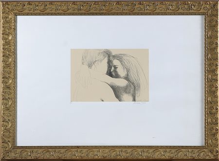 GRECO EMILIO (1913 - 1995) Senza titolo. 1981. Serigrafia. Cm 70,00 x 50,00. Tir.74/90, firma e data in basso a matita. Misure lastra:19,5x28,5cm. Cornice presente