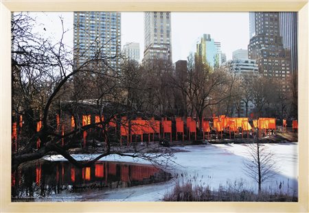 CHRISTO' (n. 1935) JEANNE-CLAUDE (1935 - 2009) The Gates. Poster. Cm 70,00 x 50,00. Christo & Jeanne-Claude. Central Park, New York City 1979-2005. Firma, titolo e dettagli stampati in basso a sinistra. Cornice presente
