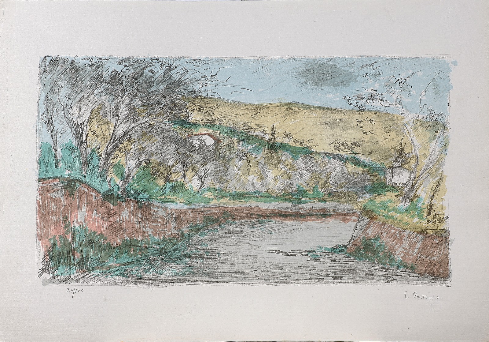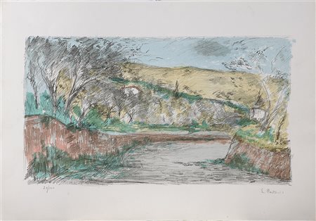 PASTORIO EZIO (n. 1911) Senza titolo. Litografia. Cm 70,00 x 50,00. Tir. 29/100 e firma in basso a matita. Misure lastra: 34x60cm.