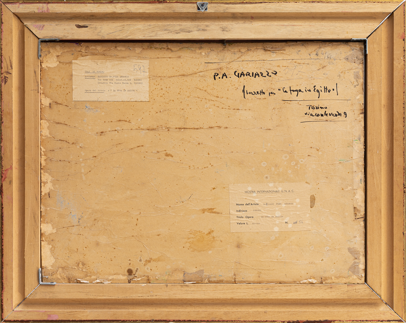 Etichetta Mostra Internazionale U.N.A.C. al retro