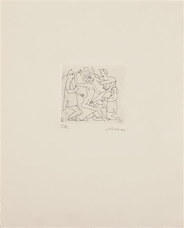 MACCARI MINO (1898 - 1989) Senza titolo. Incisione. Cm 28,00 x 35,00. P. d'A. a matita in basso a sinistra. Timbro a secco Salvatore Marchese. Misure disegno cm 9x9. Firma a matita in basso a destra.