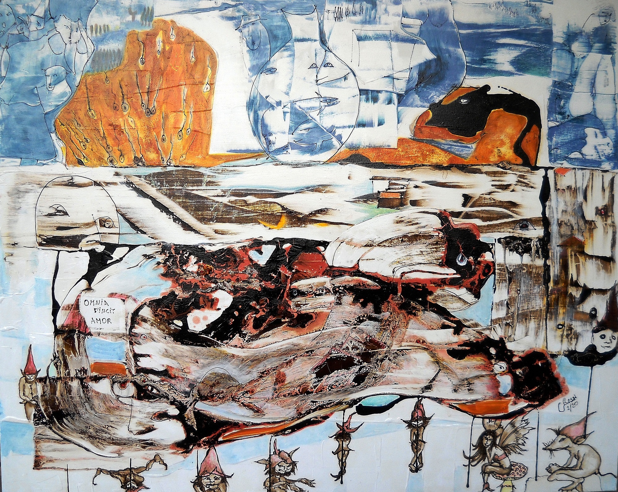 TECNICA: tecnica mista su tela, catrame, acrilico, stucco, vinavil, tubetto per vetri, pastelli olio.