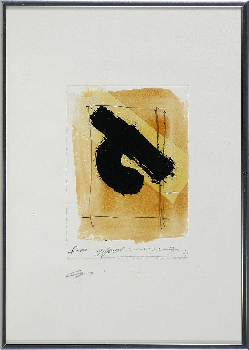 GRADI MARCO (n. 1955) Senza titolo. Tecnica mista su carta. Cm 13,00 x 18,00. Firma in basso a matita. Cornice presente