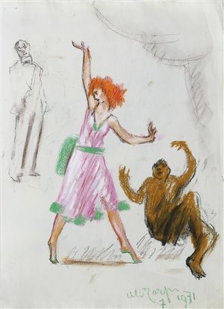 CARPI ALDO (1886 - 1973) Senza titolo. 1971. Tecnica mista su carta. Cm 35,00 x 48,00. Firma e anno in basso a destra.