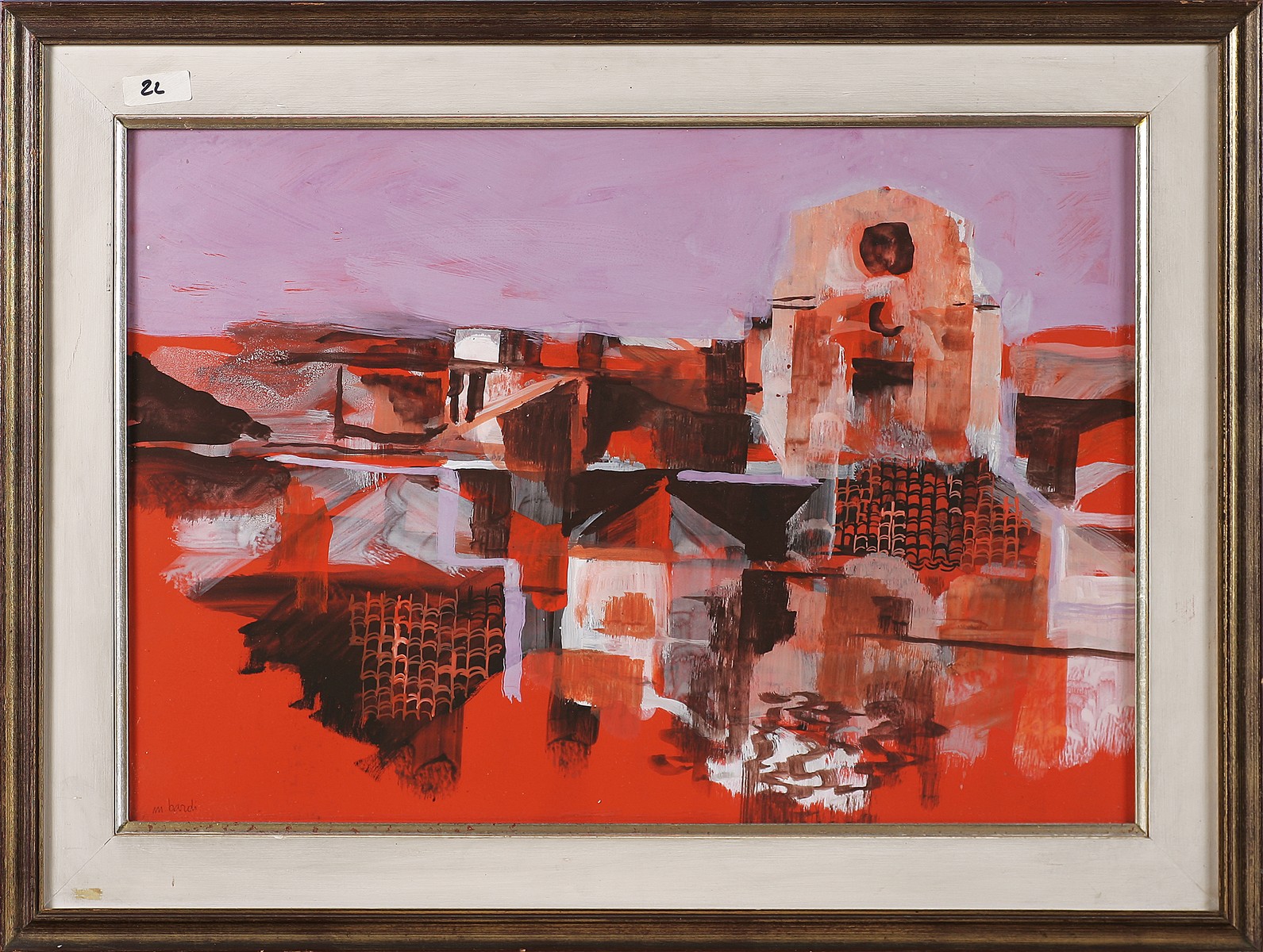 BARDI MARIO (1922 - 1998) Paesaggio siciliano. 1970. Tempera su cartone. Cm 70,00 x 50,00. Firma in basso a sinistra. Al retro reca il cartiglio della galleria S.Erasmo Club d'arte, Milano. Cornice presente