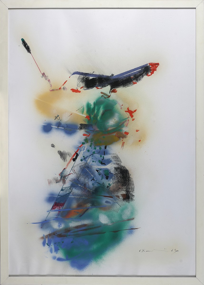 FRANCESCHINI EDOARDO (1928 - 2006) Senza titolo. 1989. Tecnica mista su cartone. Cm 70,00 x 100,00. Firma e data in basso a destra. Cornice presente