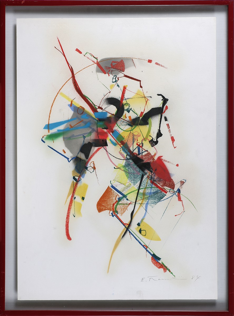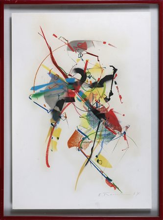 FRANCESCHINI EDOARDO (1928 - 2006) Senza titolo. 1989. Tecnica mista su carta. Cm 50,00 x 70,00. Firma e data in basso a destra. Cornice presente