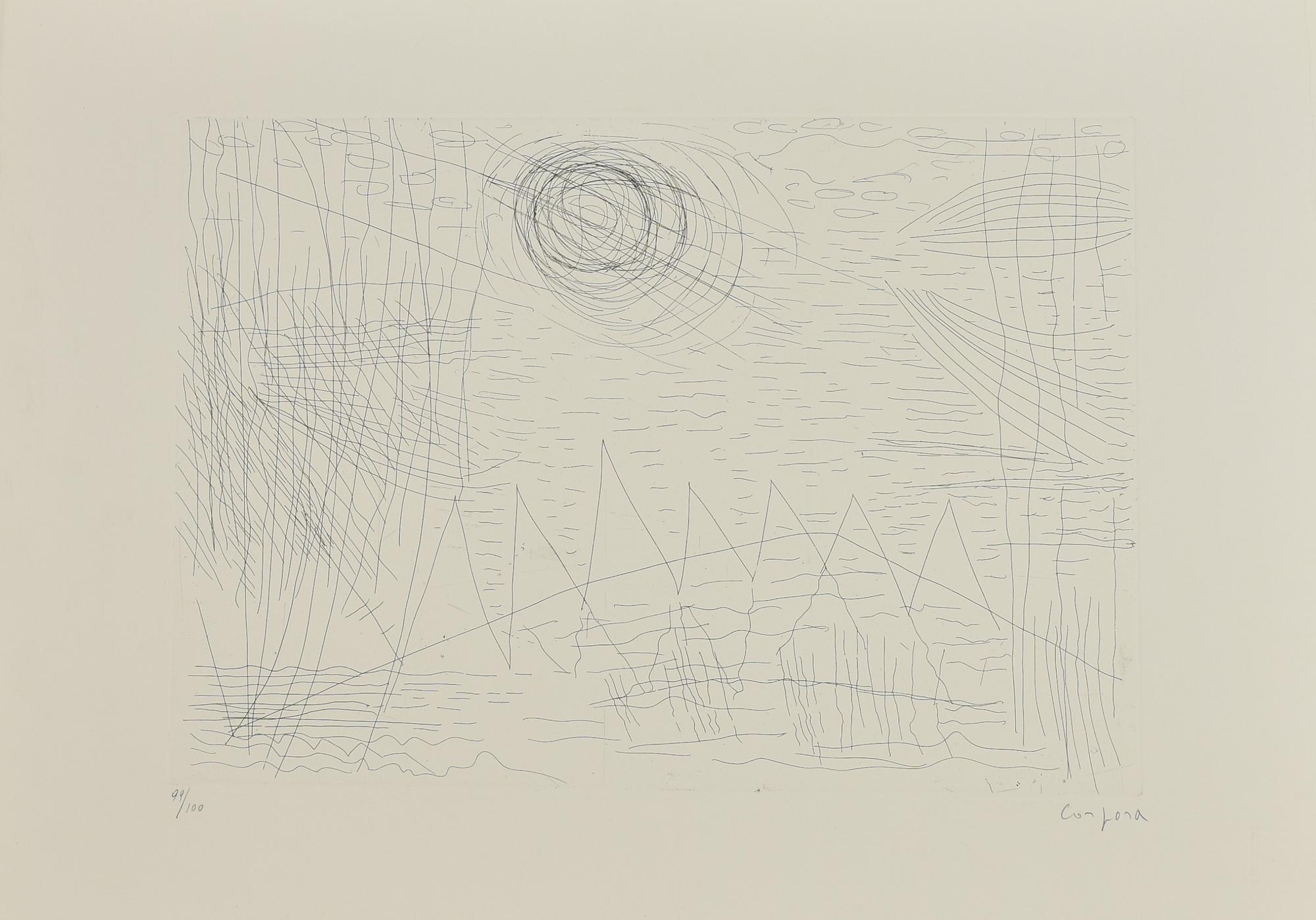 Antonio Corpora NAVIGAZIONE E COMETA Acquaforte, mm 345x495, su foglio cm...