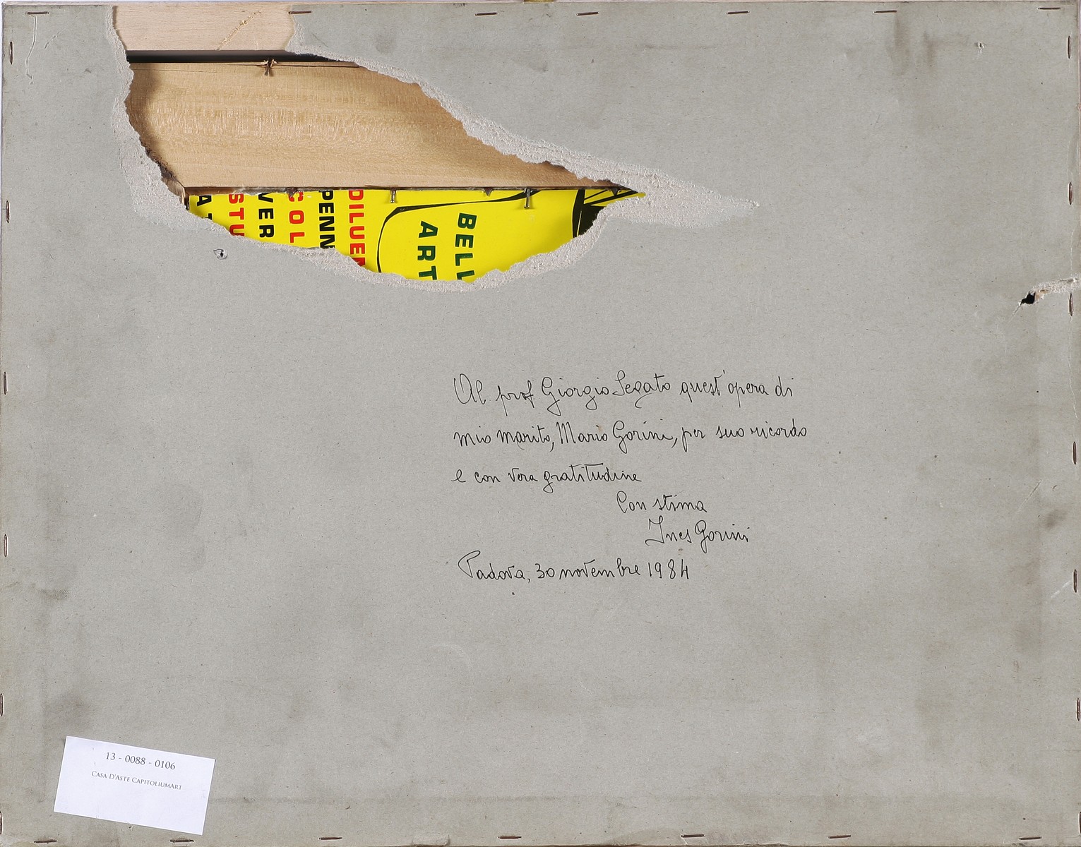 GORINI MARIO (1907 - 1984) Senza titolo. Tecnica mista su cartone. Cm 32,00 x 22,00. Firma in basso a destra. Dedica al retro. Cornice presente