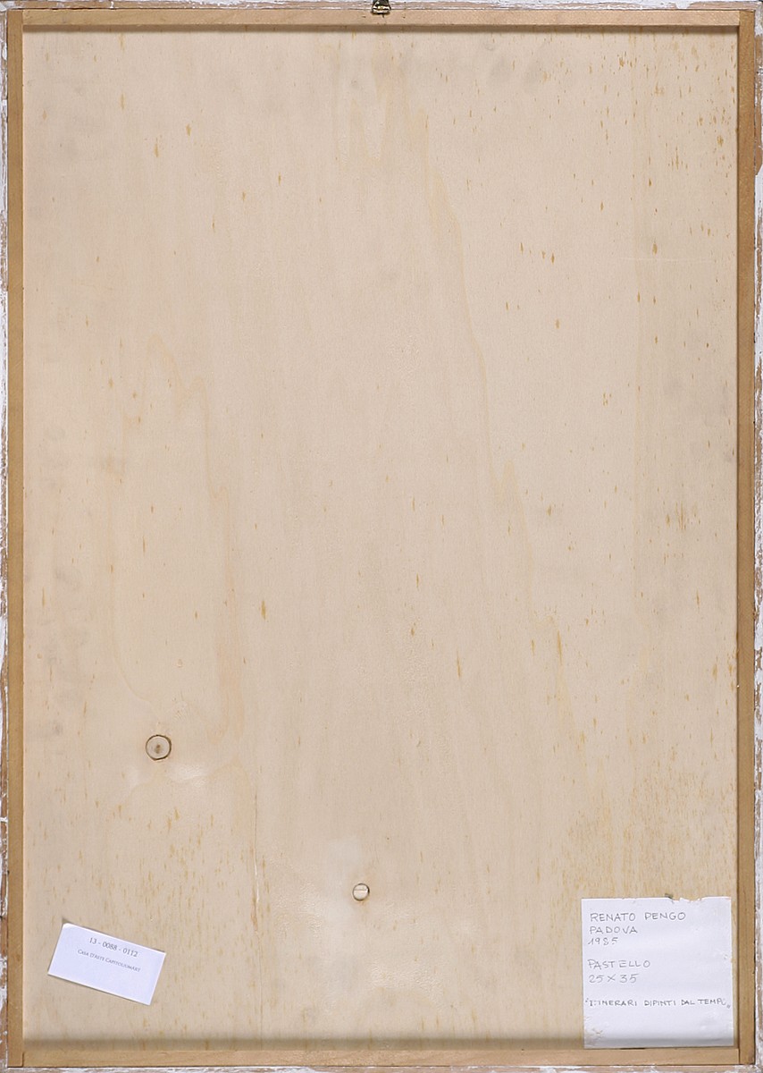 PENGO RENATO (n. 1943) Itinerari dipinti dal tempo. 1985. Pastelli su carta. Cm 35,00 x 25,00. Al retro titolo firma e anno. Cornice presente