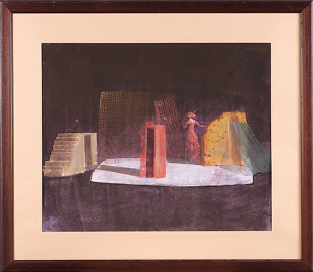 JORDAN VASILIJE (n. 1934) Senza titolo. Tecnica mista su carta. Cm 58,00 x 48,00. Firma in alto a destra. Cornice presente