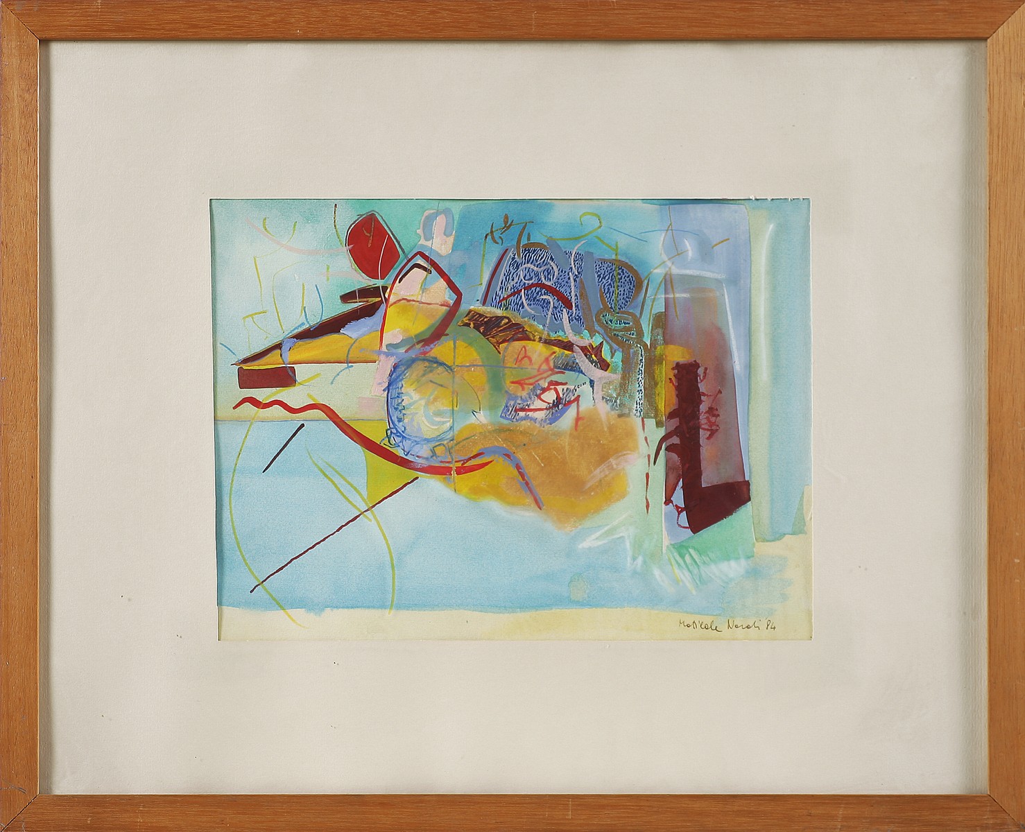 NARDI MATILDE Senza titolo. 1984. Tecnica mista su carta . Cm 31,00 x 23,00. Firma e anno in basso a destra. Cornice presente