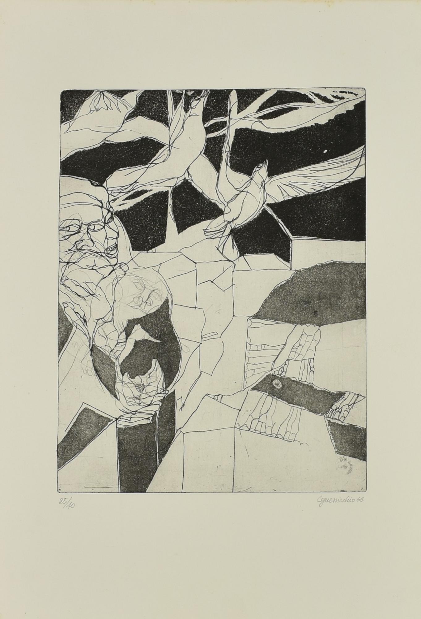 Luigi Guerricchio PAESE DI CORVI Acquaforte acquatinta, mm 414x314, su foglio...