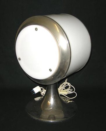 Lampada da tavolo in metallo cromato e plastica bianca, design degli anni...