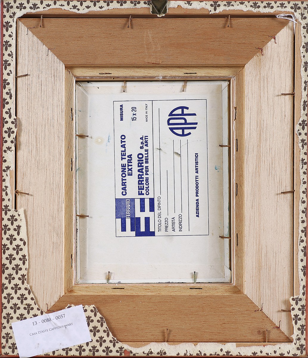 Senza titolo. 1990. Olio su cartone. Cm 15,00 x 20,00. Firma e anno in basso a sinistra. Cornice presente