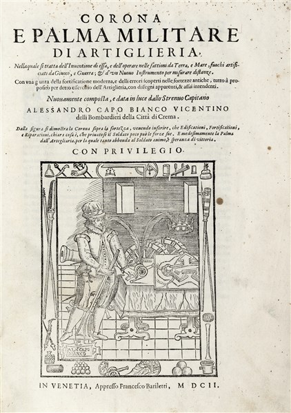 CAPO BIANCO, Alessandro (attivo ca.1598) - Corona e Palma militare di Artiglieria. Venezia: Francesco Bariletti, 1602.