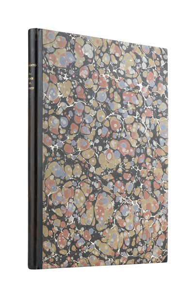 4to(275 x 205mm). Frontespizio in rosso e nero con al centro una vignetta xilografica raffigurante un maiale, capilettera figurati incisi in legno (tracce di polvere, alcune fioriture e macchie). Mezza pelle moderna, brossura originale preservata. Provenienza: Guastalla (exlibris).