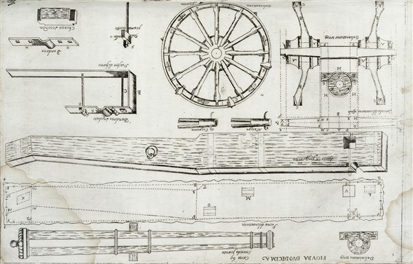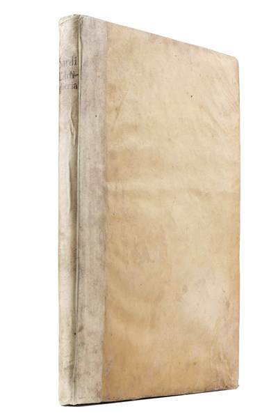 Folio (364 x 234mm). Engraved frontispiece with the portrait of the author within two cannons surmounted by the coat of arms of the city of Bologna, 23 engraved illustrations of which 9 are engraved plates depicting pieces of artillery, woodcut initials and headpieces (some dampstaining, small tear repaired at 2I2, some plates slightly trimmed at the outer margin). Contemporary vellum, manuscript title on spine (rebacked, modern endpapers, some staining). Provenance: few early maniculae - Emilio Pittaluga (bookplate).