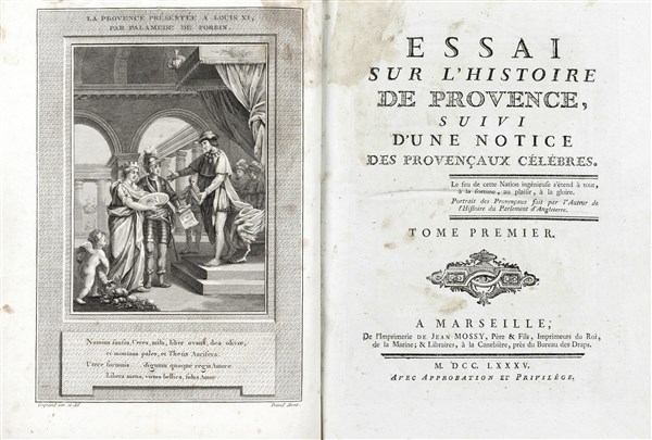 BOUCHE, Charle-François (1737-1795) - Essai sur l’histoire de Provence, suivi d’une notice des provençaux célèbres. Marsiglia: Jean Mossy, 1785.