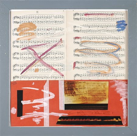 CHIARI GIUSEPPE (1926 - 2007) Senza titolo. Tecnica mista e collage su carta. Cm 45,00 x 45,00. Firma in basso a destra. Autentica dell'artista su fotografia. Cornice presente