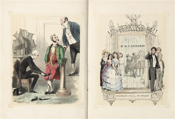 8vo(180 x 135mm). Nel lotto anche Mrs. Perkins Ball. Bell'esemplare (210 x 158mm) stampato a Londra da Vizetely brothers and Co. (s.d.) con 22 tavole incise (incluso il frontespizio) con soggetto a carattere umoristico e coloritura dell'epoca. Cartone editoriale stampato (difetti) custodito entro astuccio in marocchino blu scuro decorato in oro, tagli dorati, firmato da R. Wallis. (5)