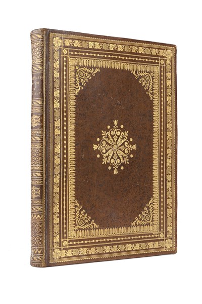 4to (273 x 205mm). Vignette on title and 3 plates depicting the costumes of the Universities' directors. Contemporary calf, covers decorated in gilt with geometric and floral motifs, gilt edges.