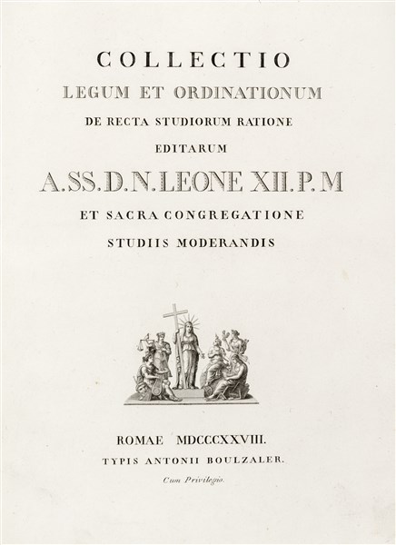 [UNIVERSITA'] - Collectio legum et ordinationum de recta studiorum ratione. Rome: Boulzaler, 1828.