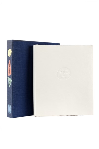 4to grande(392 x 330mm). Ogni foglio protetto da carta velina (occasionale leggera traccia di stampa alle pagine opposte alle incisioni). In fogli sciolti come da pubblicazione, entro brossura in carta Auvergne decorata a secco e preservato nell'originale scatola in stoffa blu con il titolo su etichette in tela colorata al dorso. Provenienza: con dedica dell'editore al frontespizio a Henri Giaume nel 1980 "pour Henri Giaume ce livre qui a demandé tant de peines (pour le realiser) et donné tant de joies dont celle aujourd'hui de le lui dédicaeer".