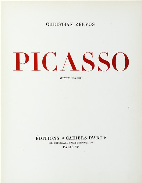 PICASSO, Pablo (1881-1973); ZERVOS, Christian (1889-1970) - Picasso Oeuvres 1920-1926. Paris: Edition "Cahiers d' Art", 1926.