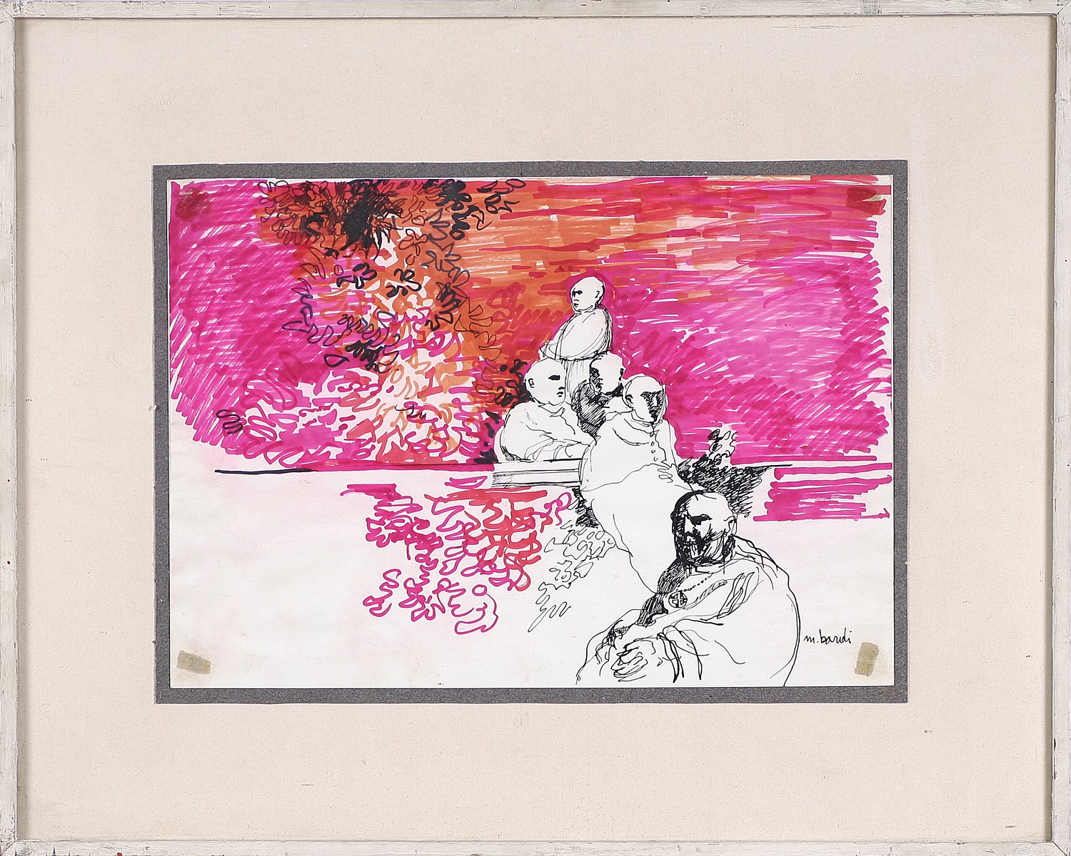BARDI MARIO (1922 - 1998) Senza titolo. Tecnica mista su carta. Cm 34,00 x 24,50. Firma in basso a destra. Cornice presente