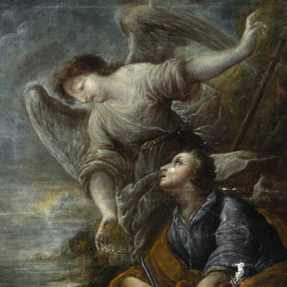 La tela in esame è stata conservata sempre in collezione privata, con la tradizionale attribuzione al varesino Pietro Antonio Magatti (Varese, 20 giugno 1691 - 26 settembre 1767), dato probabilmente basato su una tradizione orale con qualche base storica. La raffinata opera mostra, in effetti, quel gusto per la scena di profilo di G.G. Dal Sole, maestro del Magatti, ma anche influenze venete, di Francesco Maffei in particolare, nonché richiami a Francesco Nuvolone e al suo approccio garbato ed elegante ai modi del barocco