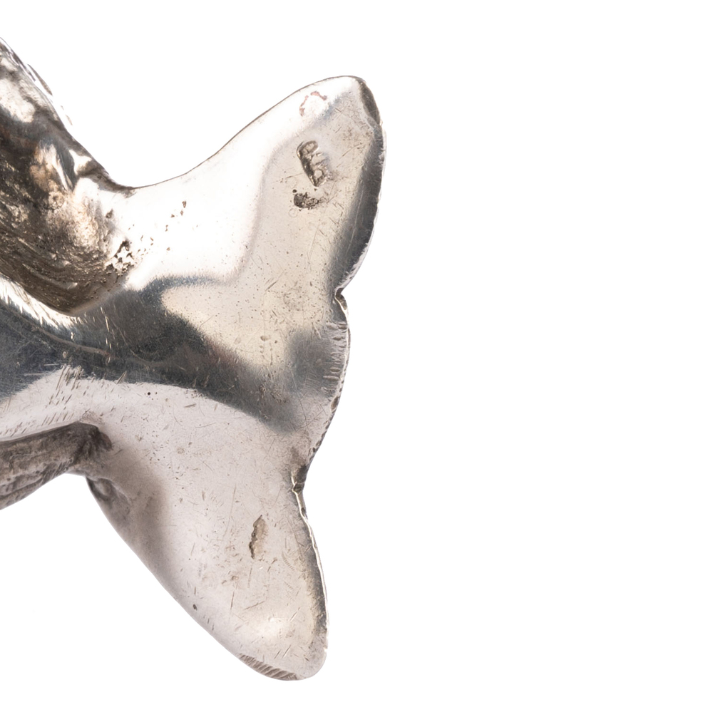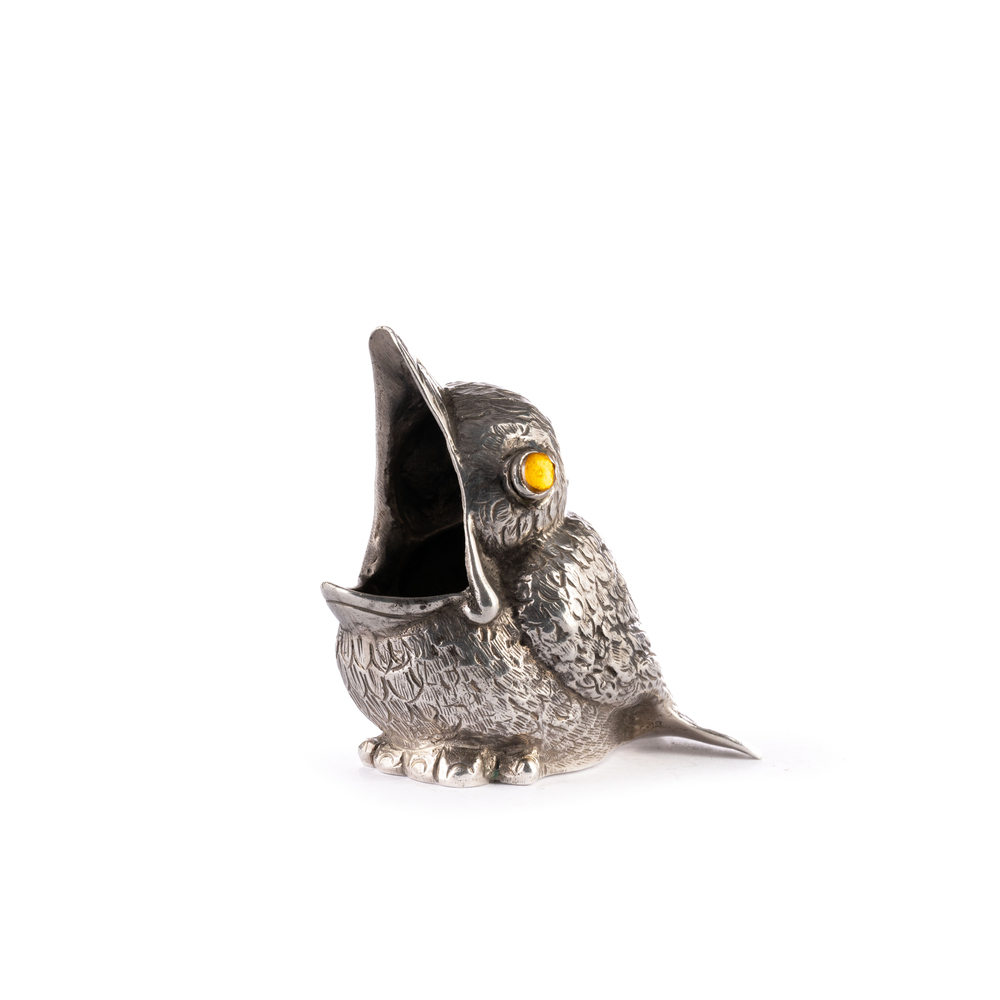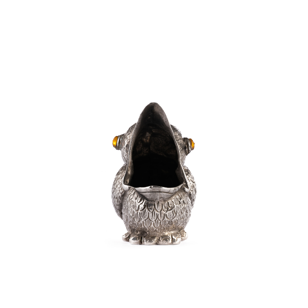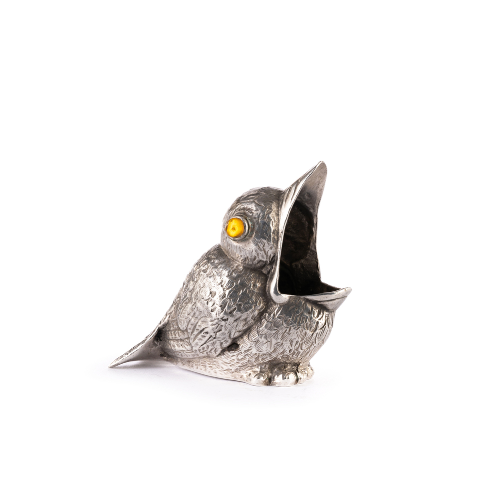 Porta sigarette in argento a guisa di pulcino, con occhi in vetro giallo