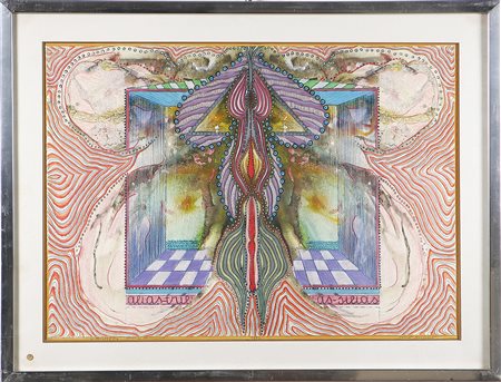 MEMO NINO (n. 1941) Mistico. 1974. Tecnica mista su carta. Cm 70,00 x 50,00....