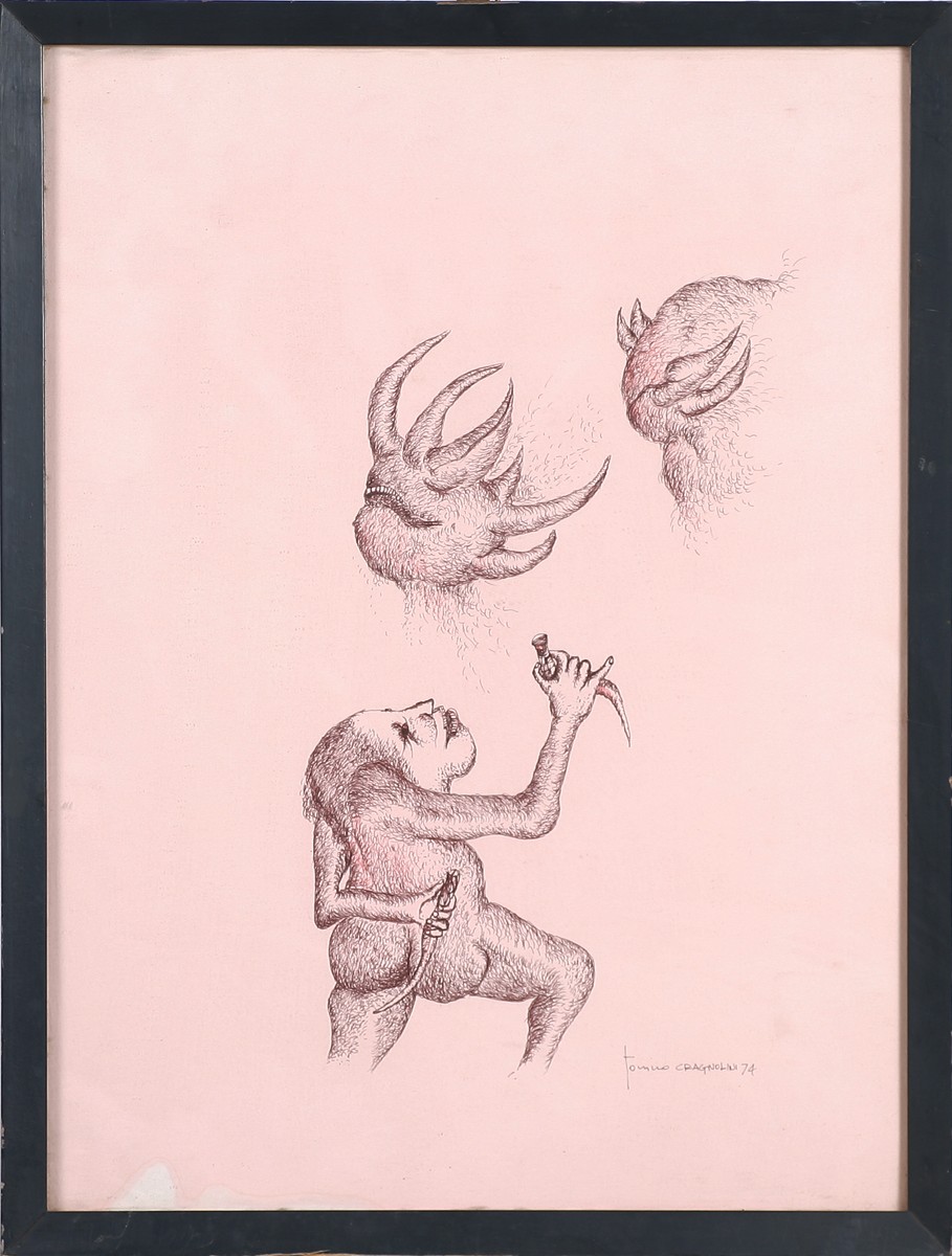 CRAGNOLINI TONINO (n. 1937) Senza titolo. 1974. Tecnica mista su carta. Cm...