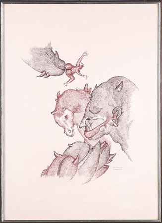 CRAGNOLINI TONINO (n. 1937) Senza titolo. 1974. Tecnica mista su carta. Cm 50,00 x 70,00. Firma e anno in basso a destra. Cornice presente