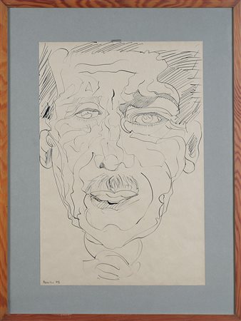 ANONIMO Volto. 1971. China su carta. Cm 32,00 x 47,00. Firma e anno in basso a sinistra - Anna Paparo. Cornice presente